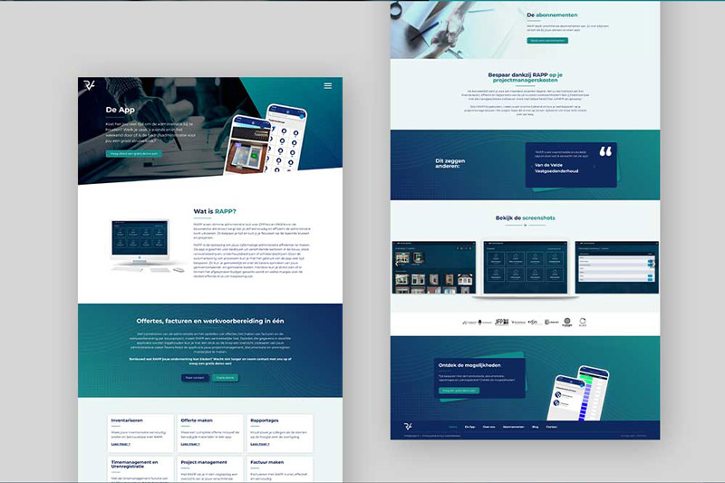 RAPP, een technisch bedrijf dat zich richt op het rapporteren, inventariseren en registreren van projecten, had een volledig nieuwe branding nodig. De eisen waren een strak, technisch design met blauw als hoofdkleur. Het resultaat is een modern logo waarbij een van de letters op een subtiele manier doorloopt naar de volgende, wat dynamiek en samenhang uitstraalt. Vervolgens is een bijpassende website ontworpen en gebouwd, waarbij het strakke en technische karakter van het merk consistent is doorgevoerd.